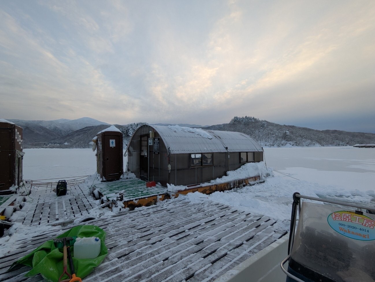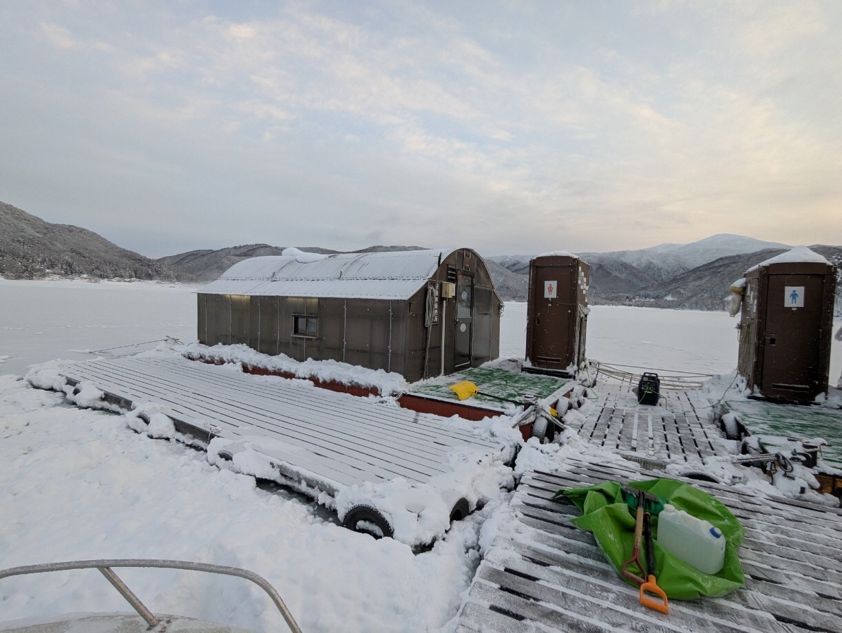 HOME > 釣り情報 > 釣り情報 ワカサギ釣果(2023/01/12) 投稿日:2025年1月14日 桧原湖は雪の蓋 結氷なるかな? 釣果 鈴木さん237匹 224.145.219.115.130.122匹 大きな群れでなく、底に来る 氷を割りながら進む船の音をお楽しみに -釣り情報