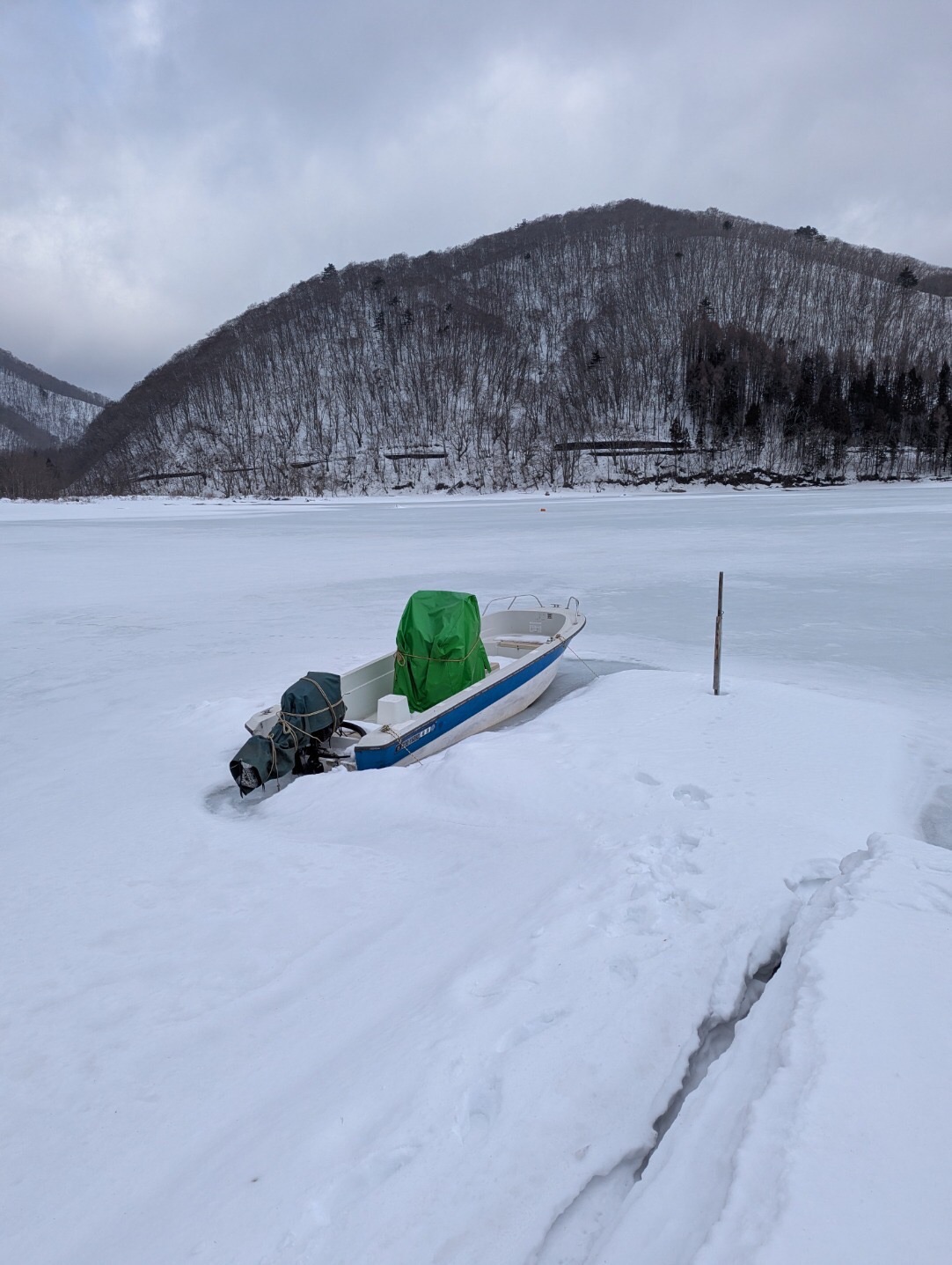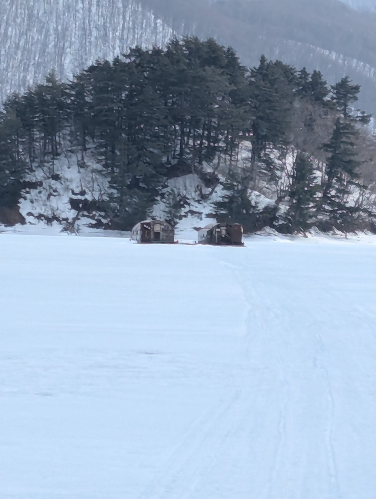 今年は雪が少なく寒波も無く氷が弱いです、モービルで行けないどころか歩いてもこわい